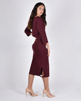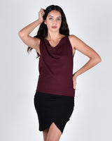 The Albatross has triangle cutouts along the leg when worn as a pencil skirt. The triangle cutouts become armholes once flipped upside down and the Albatross turns into a cocktail dress with a cowl neck. Play with the length of the dress by sliding the hem up and turn the Albatross into a top.