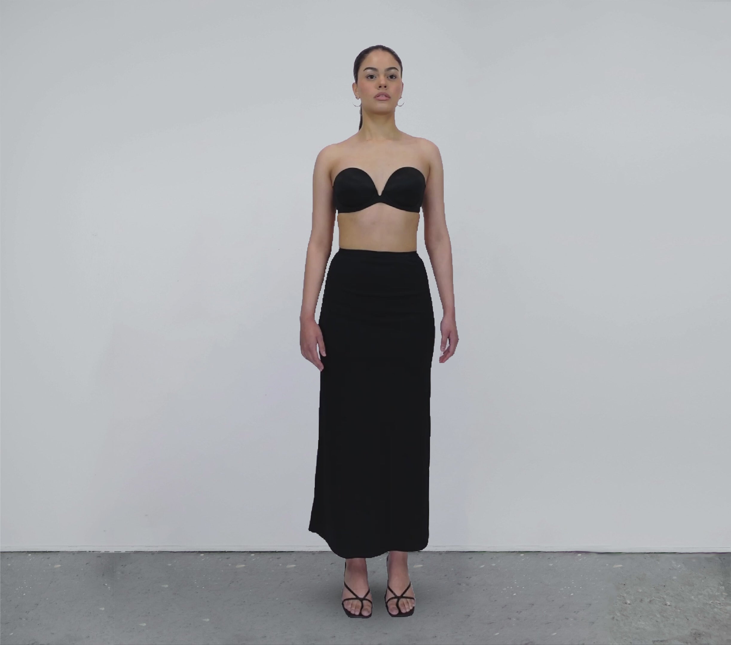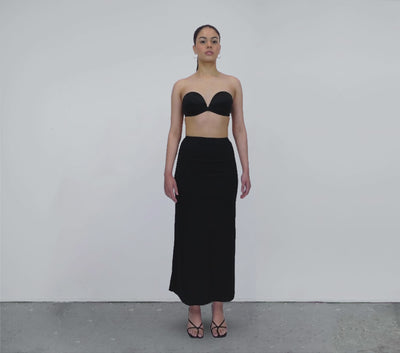 - Shift the piece up over the bust to wear it as a strapless dress.