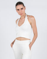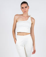 The cropped version of our Starling top 2-in-1. Wear with the tie at your shoulder for a one shoulder top, or tie it around your neck for a halter top. Stay chic and comfortable either way.